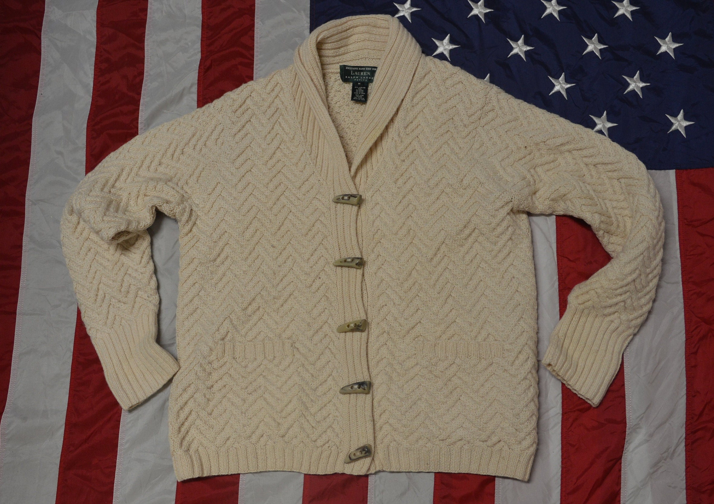 Ralph Lauren Black Label Size S Black Cable Knit Cashmere Shawl Collar Sui Generis Designer Consignment